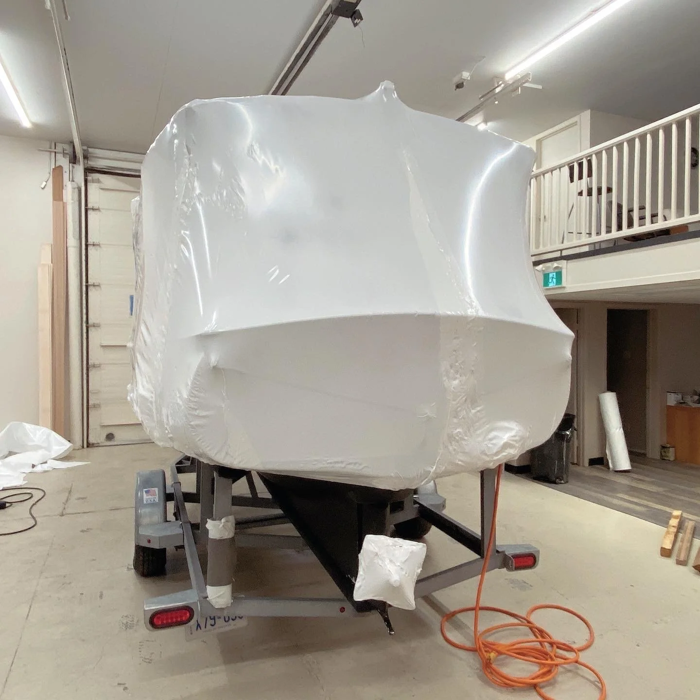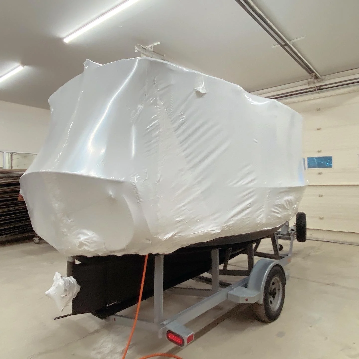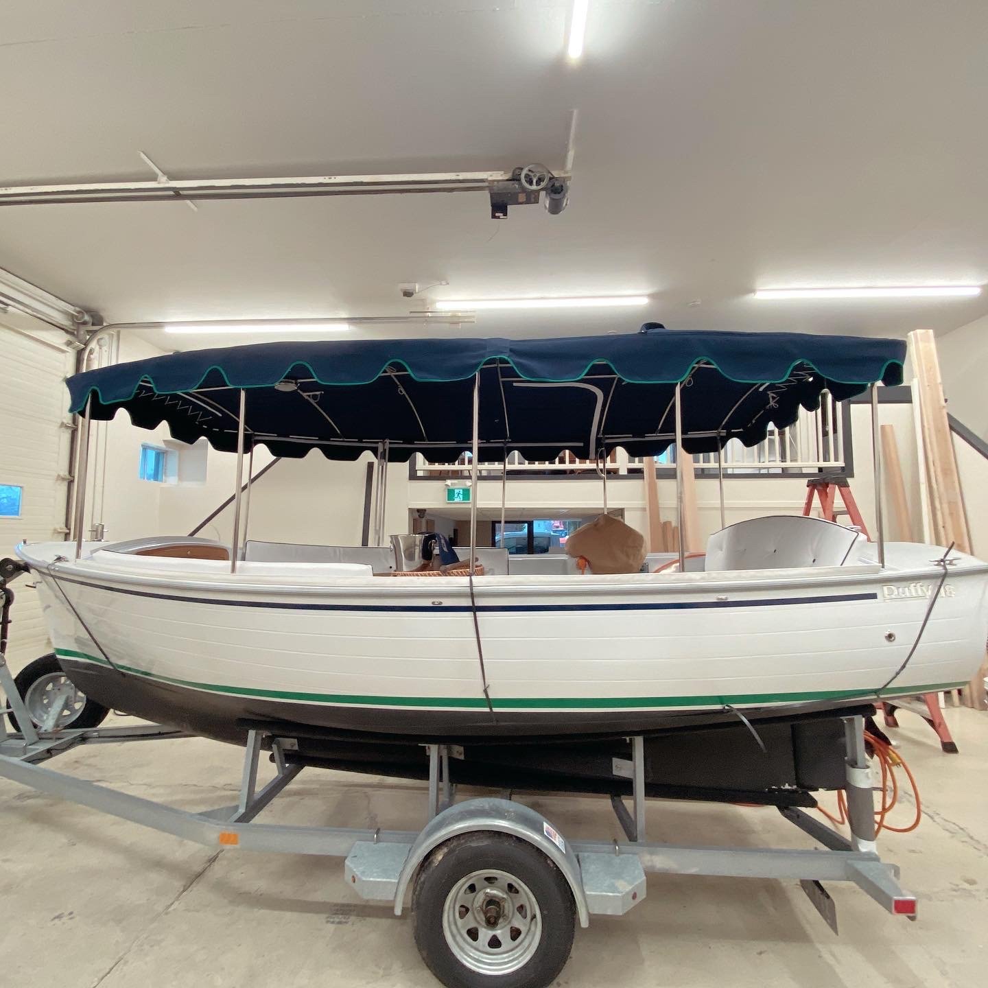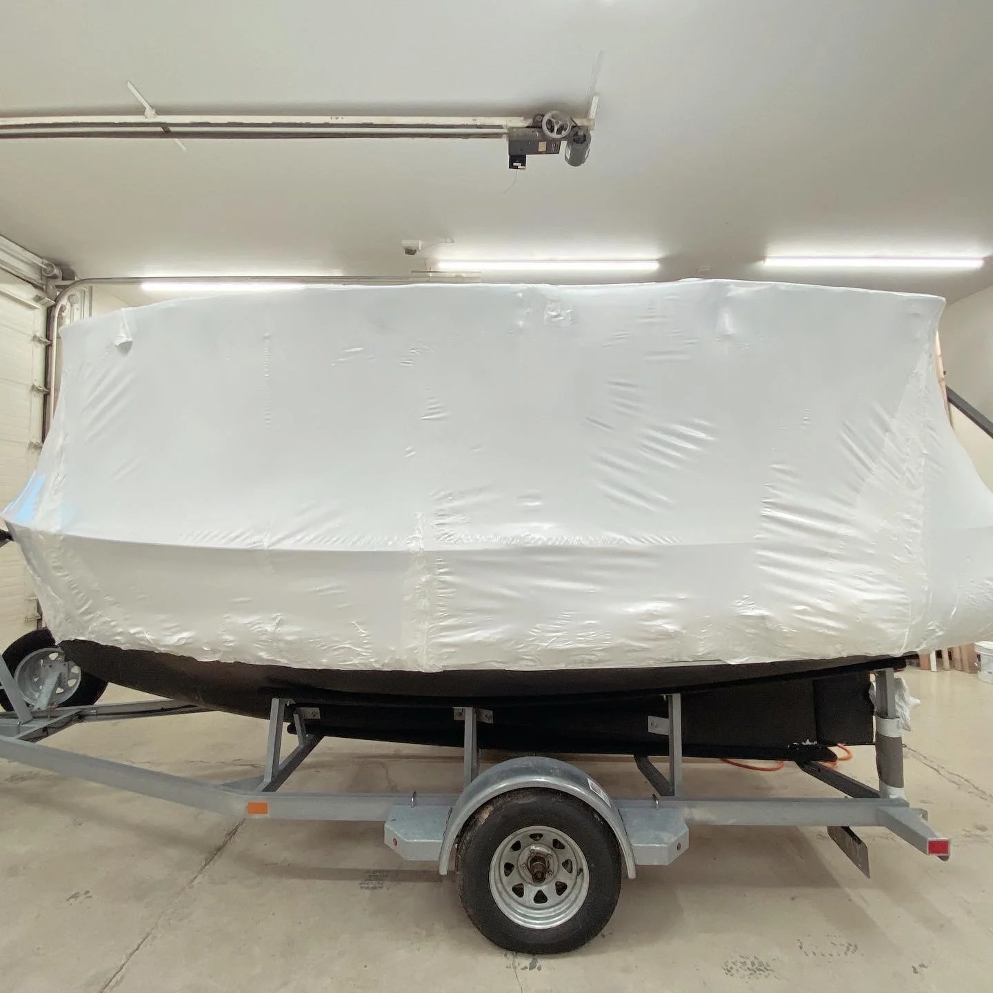 This customer called us at the very end of the boating season asking to have his beautiful Duffy Electric boat shrink wrapped for the season. Our Shrink Wrap Muskoka crew went straight to work and got him taken care of right before the first snow fall came through Bracebridge. Great seeing such a unique watercraft up close. Only in Muskoka.