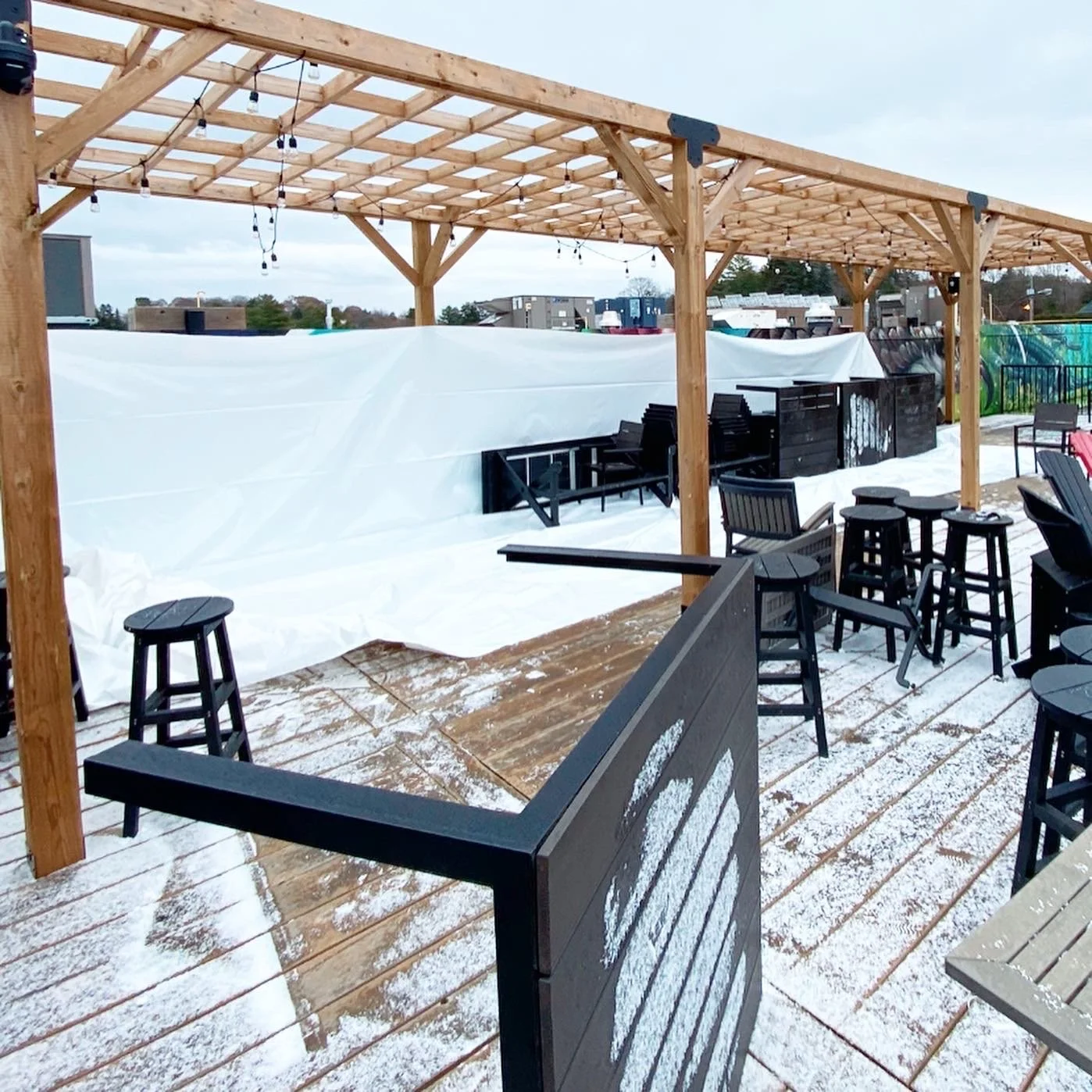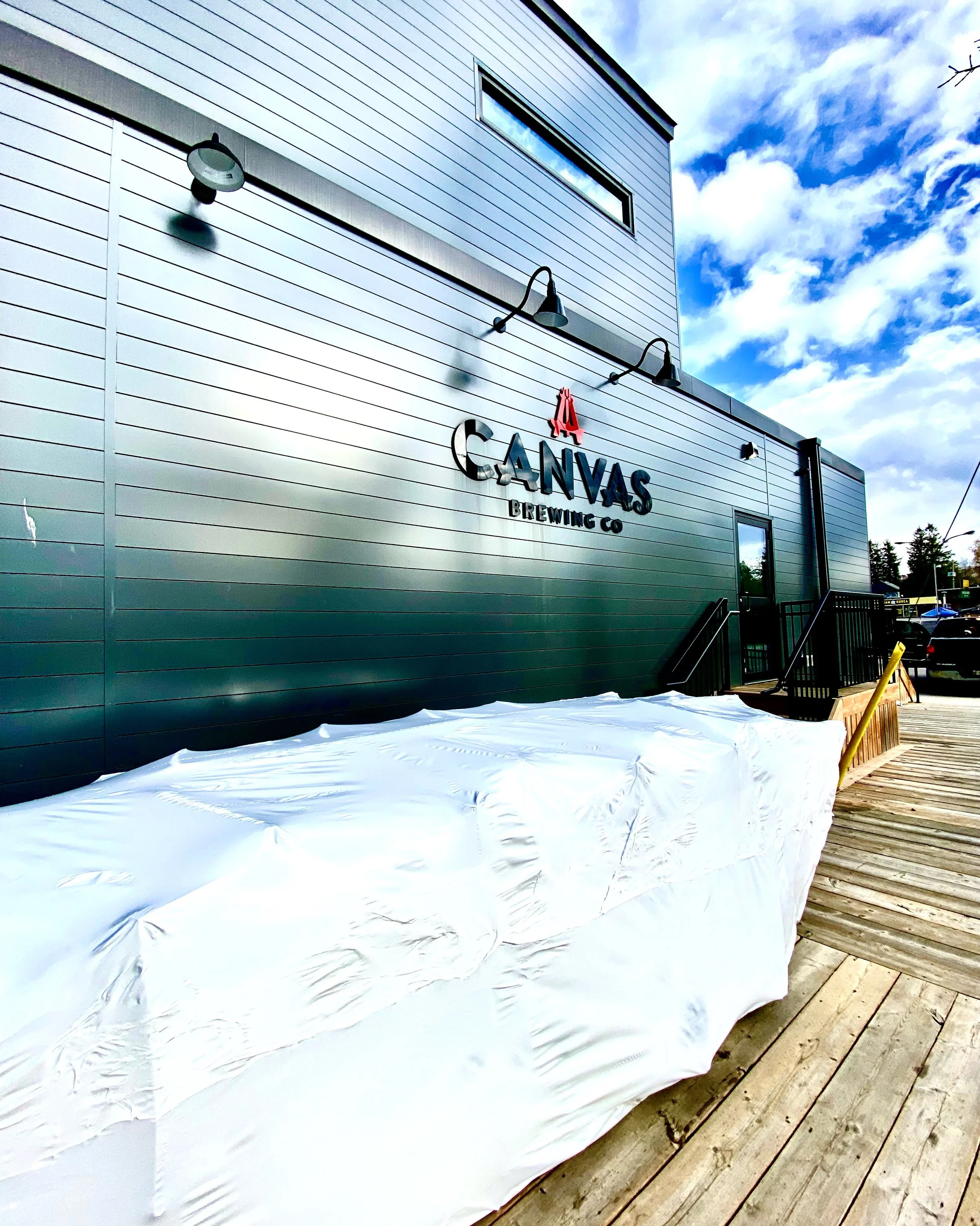 Our crews at Shrink Wrap Muskoka worked hard through the fall to help our customers prepare for the winter, including two notable restaurants in the Huntsville area. Allora and Canvas Brewery worked with us to secure their patior inventory for the winter.